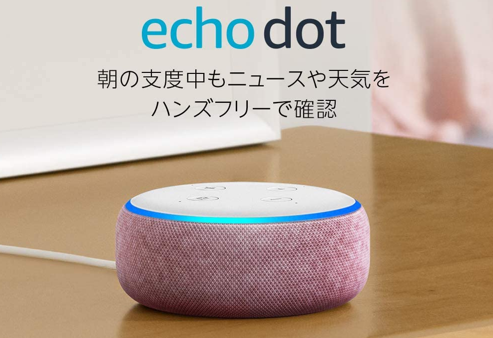 Alexaの中でも、実はシリーズが5種類くらいあるんですが、その中でも一番コンパクトで、最安のタイプが「Echo Dot」です。