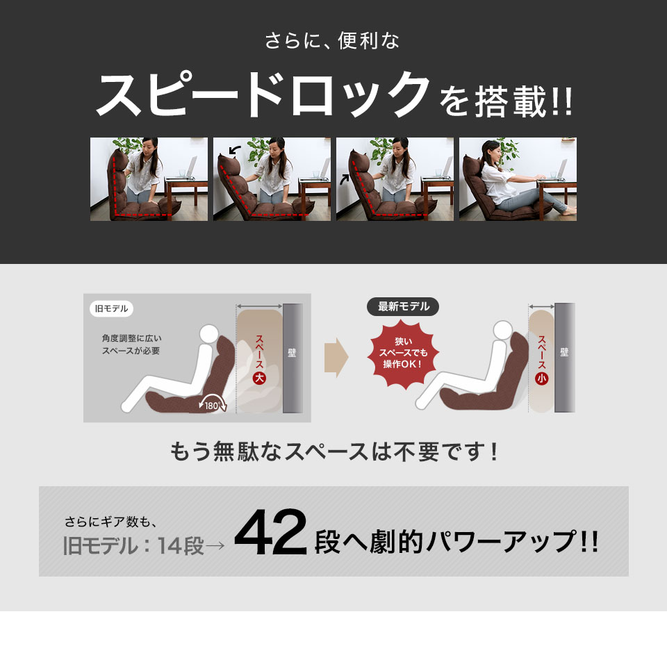 リクライニングは42段階。