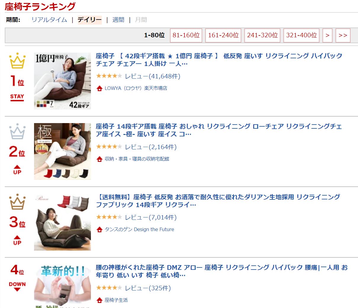 (ちなみに、先ほどのアイリスオーヤマの座椅子は、「リクライニングチェア」カテゴリーでした(笑))